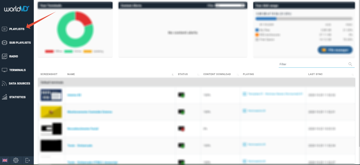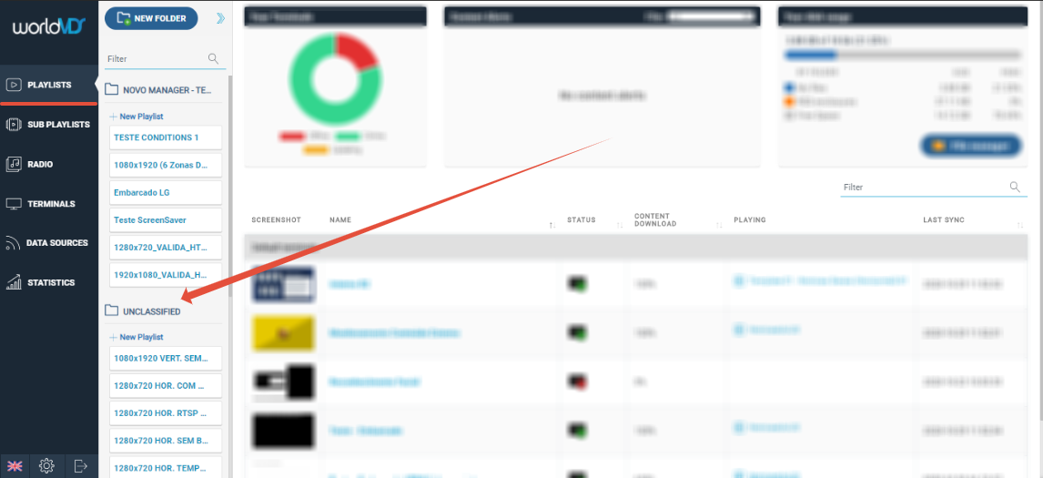 Após realizar o Login a tela inicial do novo manager será exibida. No menu ao lado esquerdo da tela selecione a opção "PLAYLISTS" como indicado abaixo: