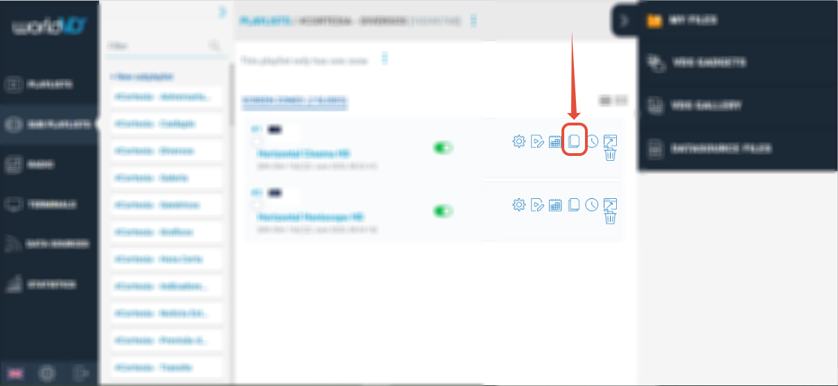 Essa funcionalidade serve para duplicar um slide existente, caso pretenda ter conteúdos com as mesmas configurações, alterando posteriormente apenas o seu nome. Para isso apenas terá de clicar no botão “Duplicate”.