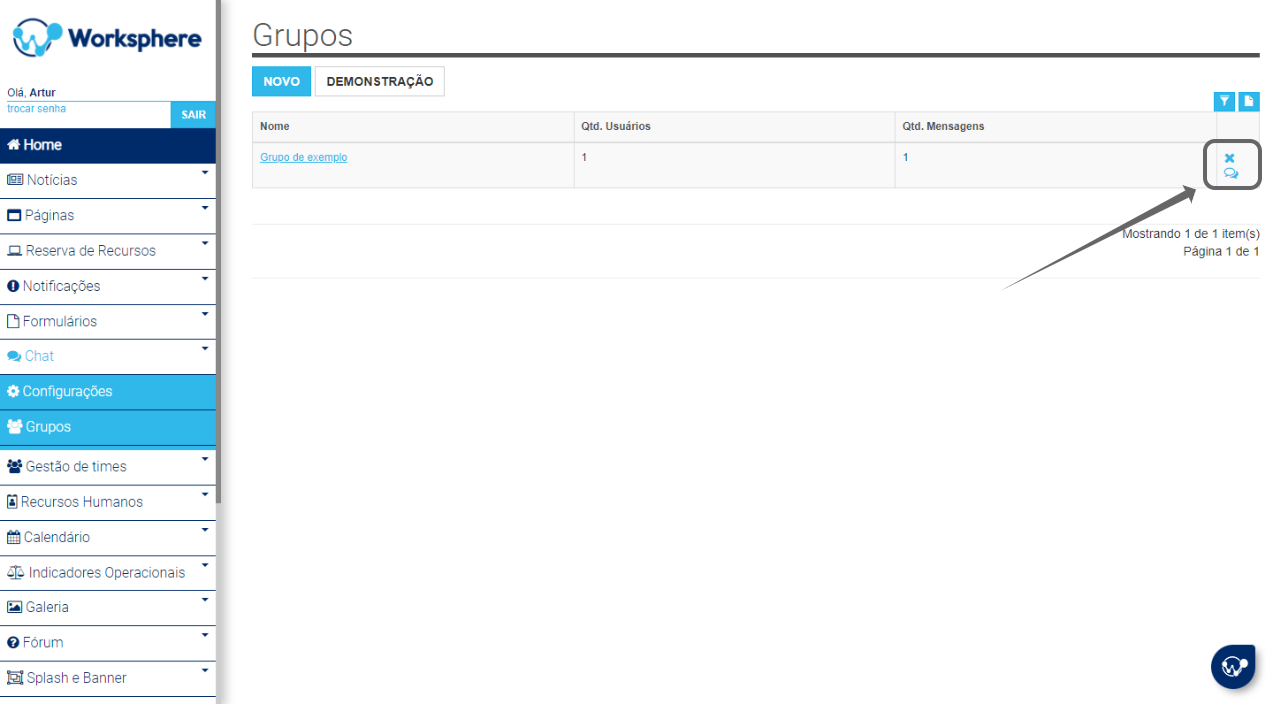 Criar demonstração: Ao clicar em criar demonstração um grupo de exemplo será gerado com uma mensagem de demonstração.