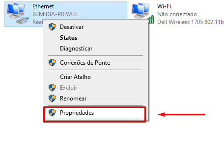4- Clique com botão direita em ETHERNET e após em propriedades.