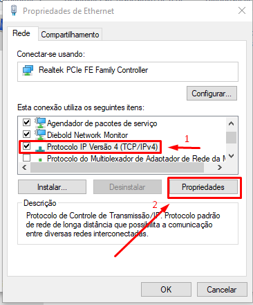 5- No quadro seguinte selecione PROTOCOLO IP VERSÃO 4(TCP/IPv4).