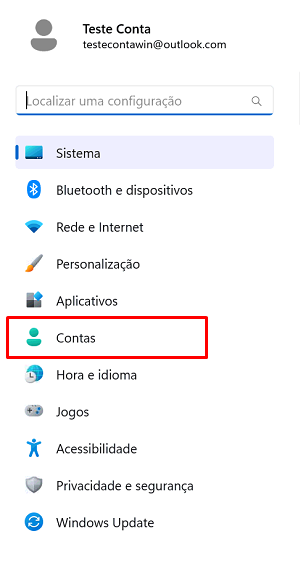 Abrindo em outra aba, irá exibir opção de Contas de Usuário: