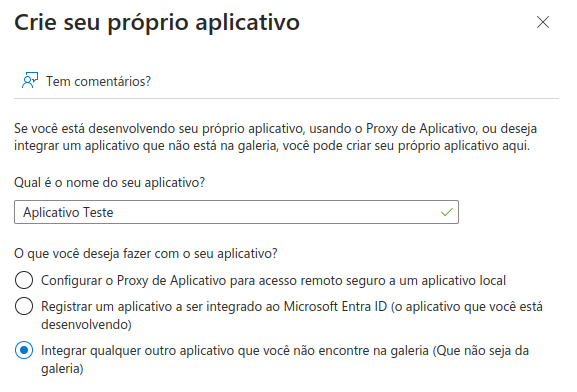 Passo 1: Criar o Aplicativo Empresarial na Azure