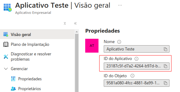 - Na página do aplicativo recém-criado, copie o ID do Aplicativo, pois ele será necessário mais tarde.