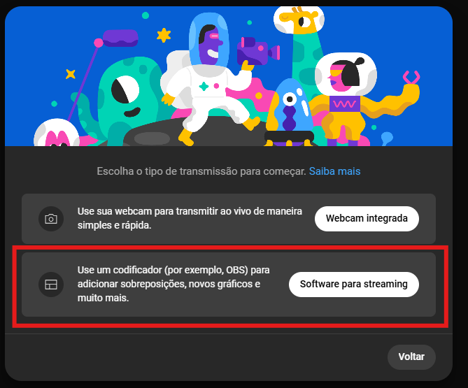 Passo 3 - Criando a transmissão ao vivo no Youtube