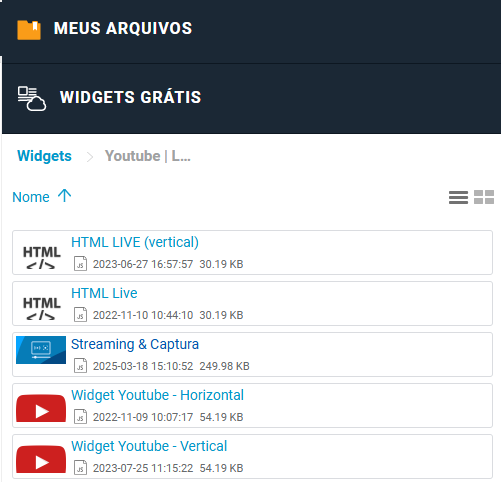 Em nosso sistema, localize ou insira na playlist desejada o widget de streaming que pretende utilizar.