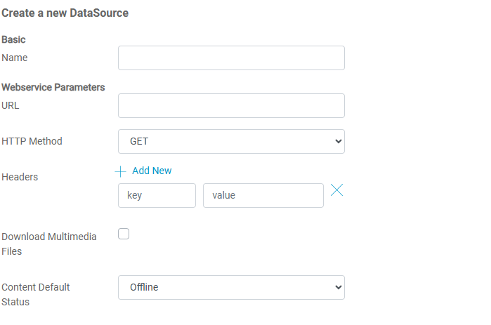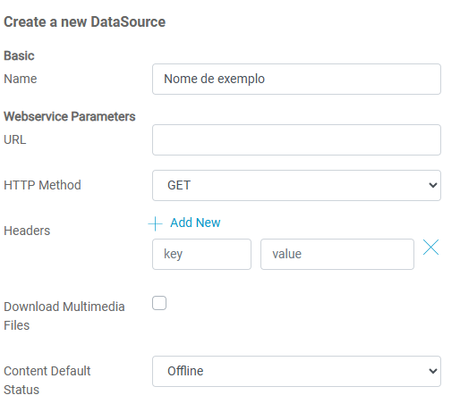 4. Adicione os dados necessários para o funcionamento do datasource.