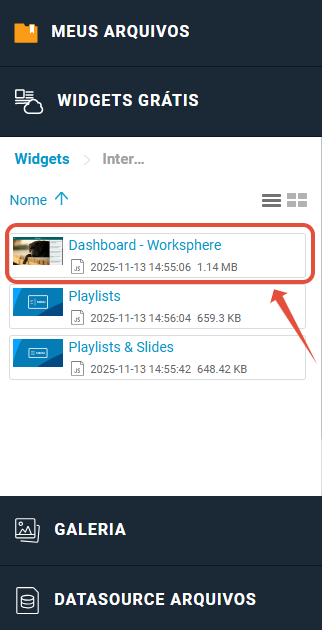 2. Dentro da pasta você terá acesso aos widgets Interativos disponíveis. Basta clicar, segurar e arrastar para dentro de sua playlist