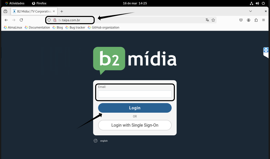 Ao abrir o navegador entre no site "tv.taipa.com.br" e caso não tenha os dados de acesso, entre em contato com a nossa equipe para preencher o campo e-mail com os dados que estão no cofre de senha: