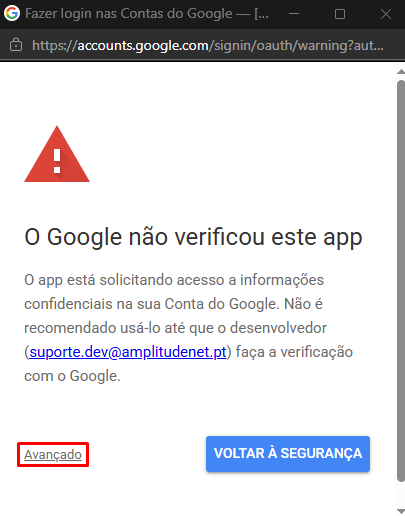 Feita a seleção, ao exibir a seguinte tela, clique em Avançado
